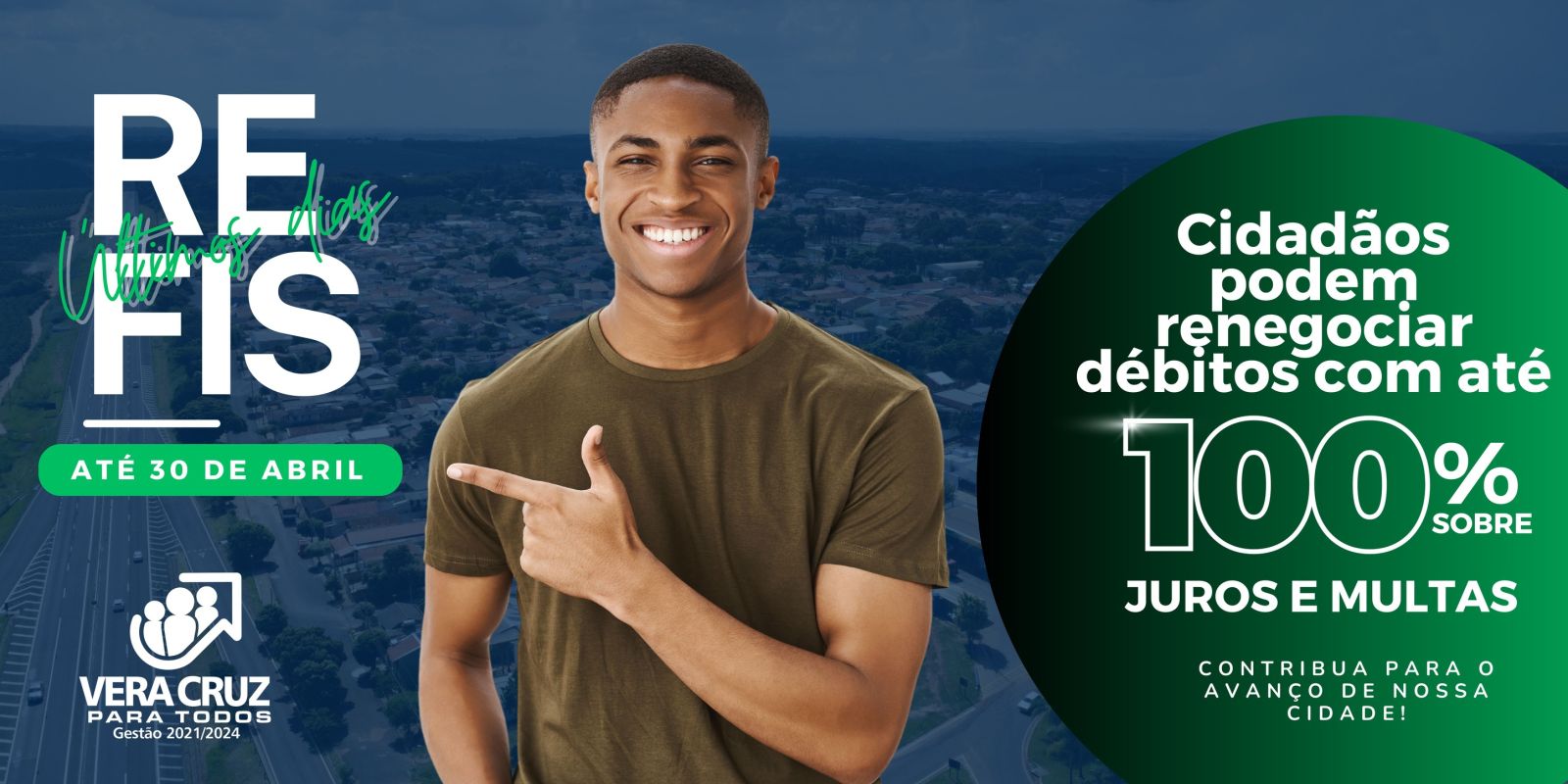 Os moradores de Vera Cruz têm até o dia 30 de abril a oportunidade para colocar suas contas em dia com o município. É que a Prefeitura está oferecendo condições especiais para a renegociação de dívidas, proporcionando descontos substanciais em multas e juros.