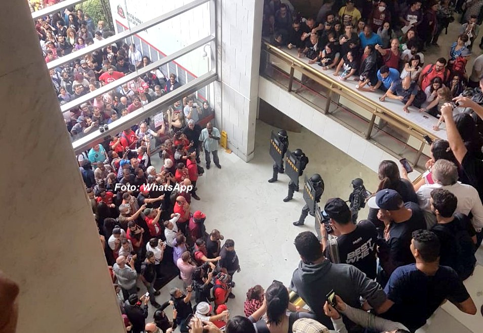 Em um grupo de WhatsApp, os servidores faziam relatos da situação que estava bastante complicada, com bombas de efeito moral e spray de pimenta. Só no começo da tarde a situação começou a ficar mais tranquila.