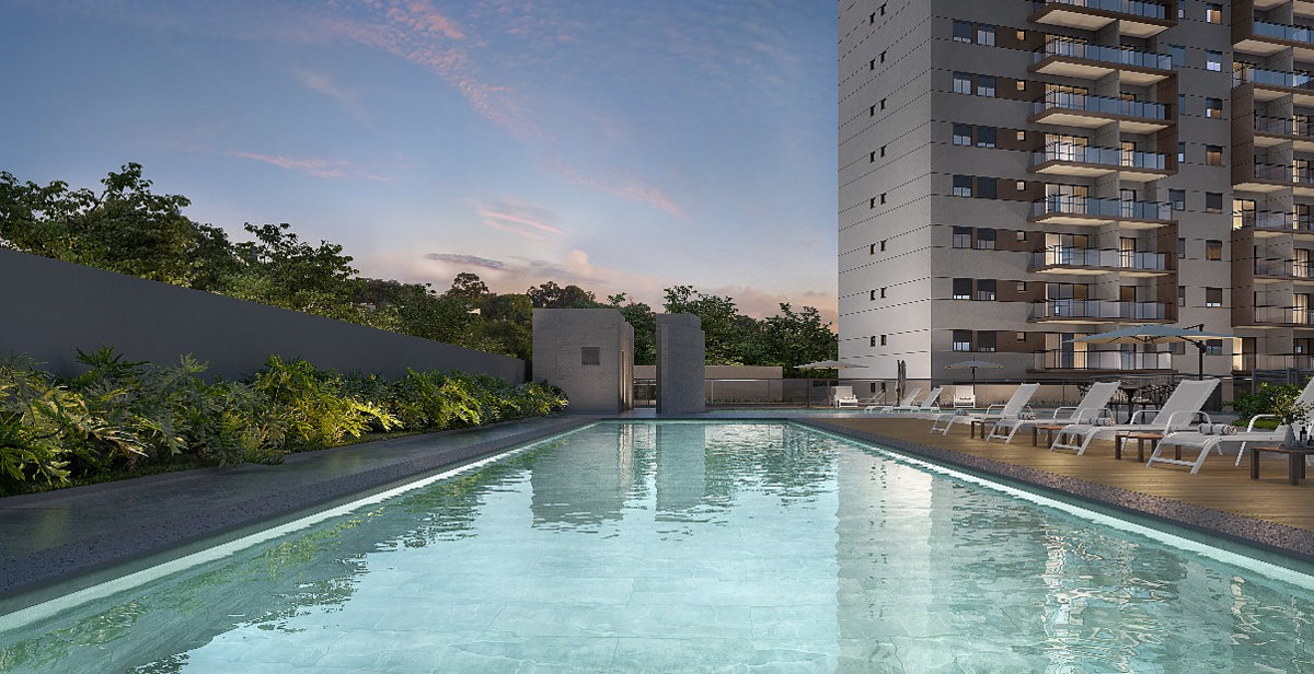 O empreendimento será um dos primeiros a oferecer piscina com raia para os moradores.