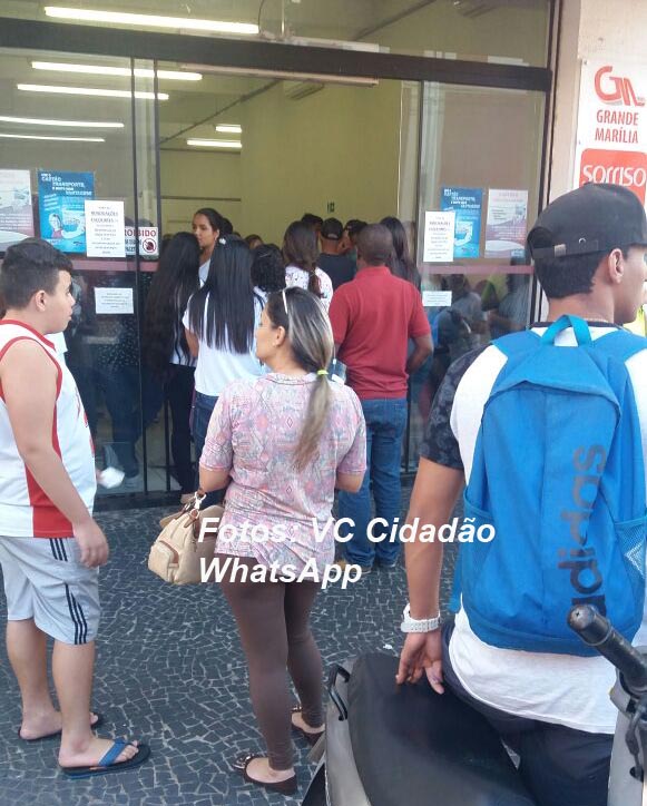 "Eu fiquei quatro horas na fila, da uma às cinco da tarde. Só tem 20 cadeiras para centenas de pessoas, sem água e nem banheiro. As senhas são escritas e as funcionárias tem que ficar gritando", relatou uma senhora que mora no bairro Nova Marília e estava renovando a carteira do neto (ela pediu para não ter o nome divulgado). Relatou ainda que, como o espaço é pequeno (loja na rua Maranhão), muita gente teve que ficar do lado de fora, na calçada.