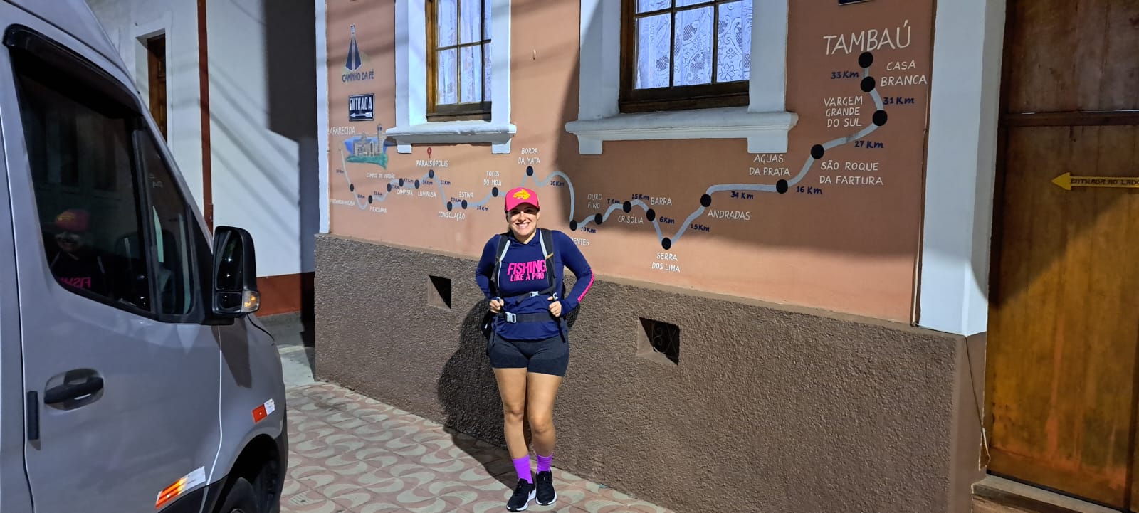 Chegando em Paraisópolis, era o momento da peregrinação. Carol explica que quase todo o trajeto de 135 quilômetros é percorrido em estrada "de chão" (terra e pedra), com alguns momentos de asfalto, como em Guaratinguetá e e Campos do Jordão.