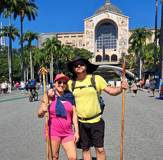 O casal chegou em Aparecida do Norte por volta das 11h30 de sábado, após quatro dias de muita caminhada. Carol afirmou: