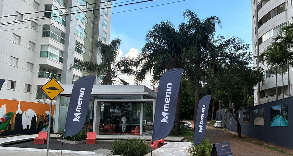 Menin monta estande de vendas com plantão de corretores na área da obra do Urban Esmeraldas.