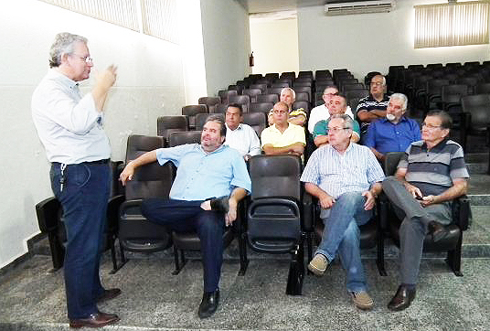 Prefeito João Carlos (em pé) durante reunião com os colegas da região.