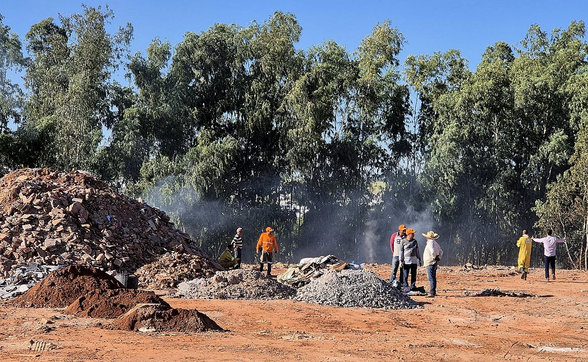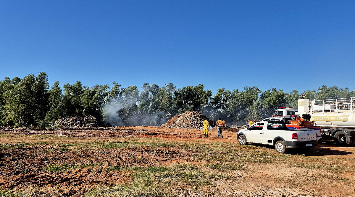 Defesa Civil e servidores contêm incêndio próximo ao setor de resíduos da Prefeitura