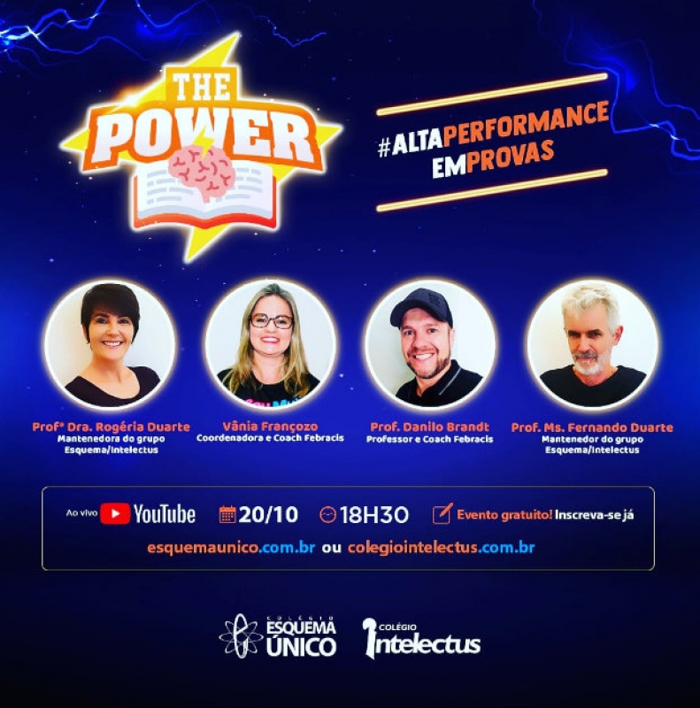 "O foco geral deste The Power, é importante não só para os vestibulandos e alunos preparatórios de concursos, mas também para muitas pessoas que acreditam que tudo acabou e que as coisas não tem mais jeito. O foco é puxar a auto-responsabilidade, o que podemos fazer no hoje pra chegar no futuro com mais força e otimismo", afirmou a coordenadora do Esquema Concurso e Coach Febracis, Vânia Françozo.