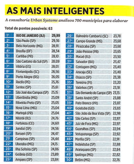 A revista destaca a cidade do Rio de Janeiro, no topo do ranking das mais inteligentes.