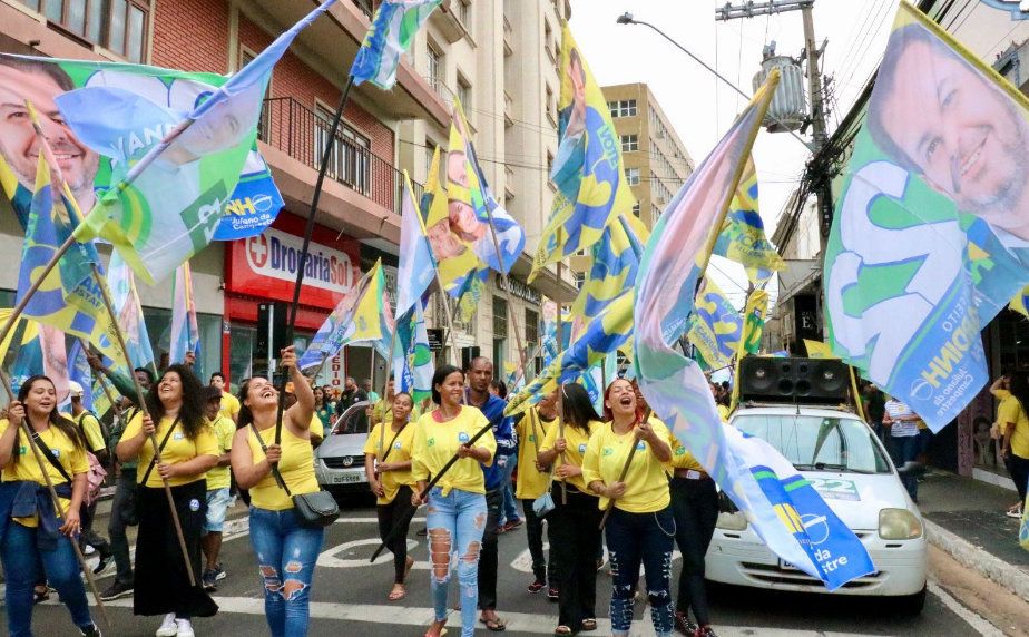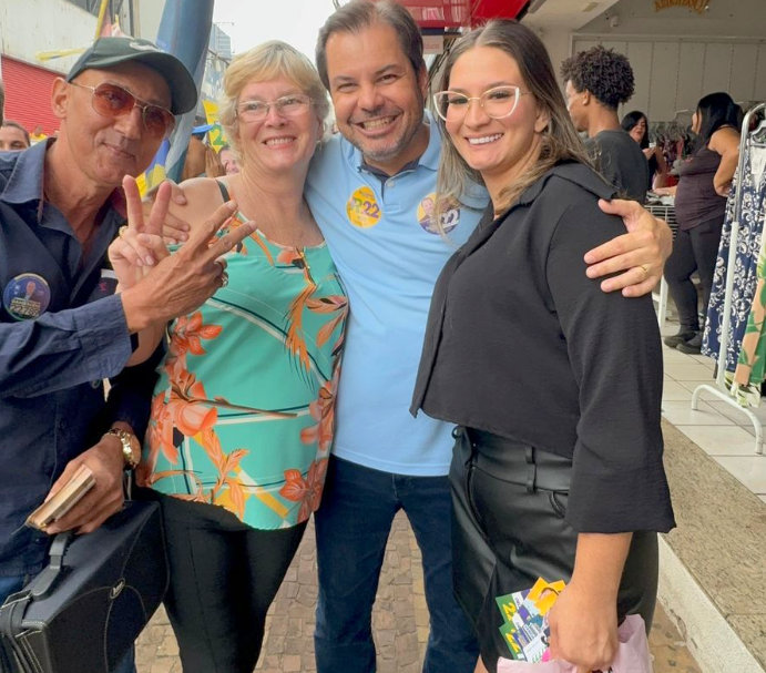 O candidato do presidente Jair Bolsonaro, Ricardinho, iniciou a passeata na praça São Bento, e ao lado de Juliano, de apoiadores e candidatos a vereador da coligação ‘Marília é Deus, Pátria, Família, Amor e Liberdade’ [PL/PRD/DC/Mobiliza/PSB], visitou todas as lojas e lanchonetes.