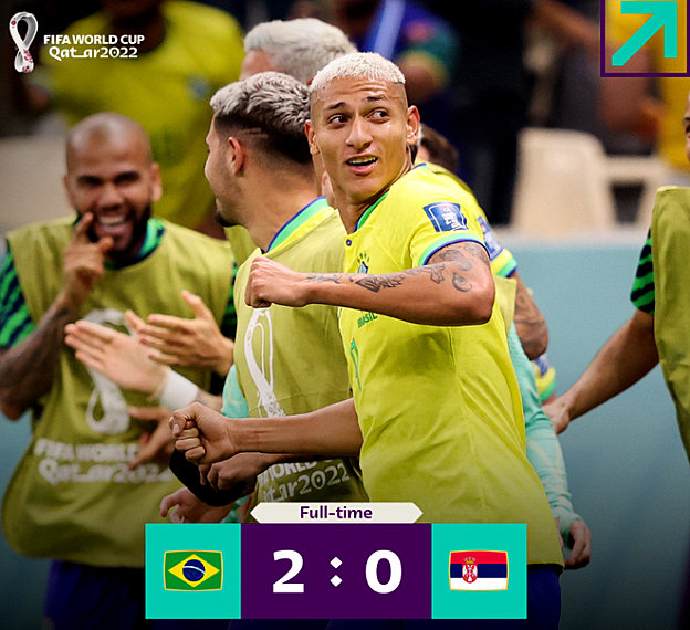 Contando com o faro de gol do atacante Richarlison, o Brasil derrotou a Sérvia por 2 a 0, nesta sexta-feira (24) no Estádio de Lusail, em seu primeiro jogo pelo Grupo G da Copa do Catar. Com este resultado, a seleção brasileira lidera a chave com o mesmo número de pontos da Suíça, que tem um saldo de gols pior.