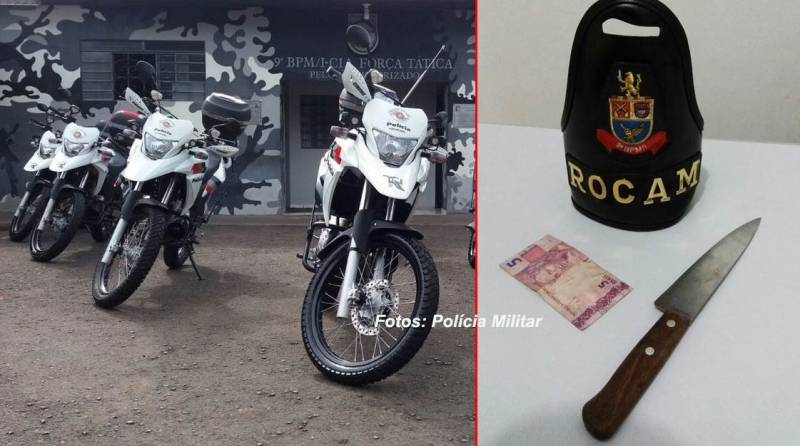 Ao ver as motos, o suspeito se desfez da faca e tentou fugir, mas foi abordado no cruzamento da avenida José Rino com a rua Otávio Roberto Ramos. Realizada busca pessoal, foram localizados com menor apenas R$ 5,00 dos R$ 70,00 que roubou na padaria.