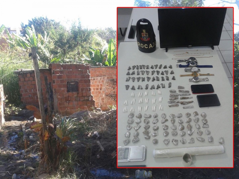 Ela foi detida e dentro de seu barraco foram encontrados 78 pinos de cocaína, uma balança de precisão e demais apetrechos para embalo de droga. O Canil foi acionado para dar apoio na ocorrência e a cadela Patrícia conseguiu localizar várias porções de maconha que estavam nas proximidades. Ainda em posse de Paloma os policiais apreenderam 6 relógios, jóias e um monitor.