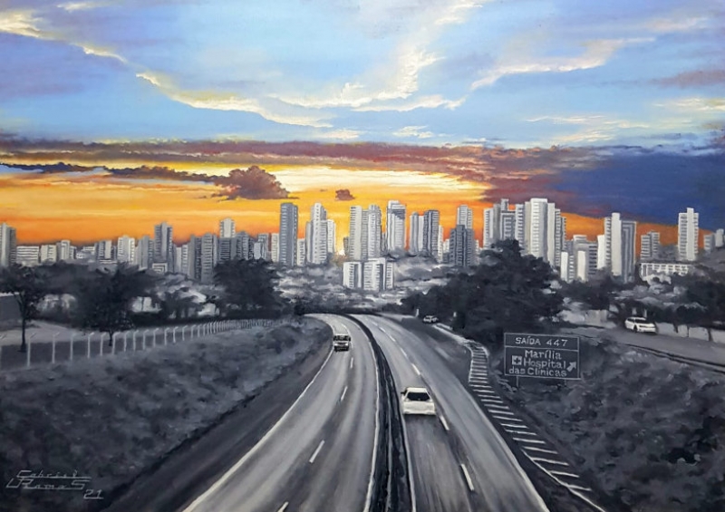 Gabriel Ramos desenvolveu dez obras em óleo sobre tela, todas retratando a cidade, como forma de homenagem aos 92 anos de Marília, comemorados no mês de abril. A exposição, que teve um roteiro itinerante, esteve na vitrine da Biblioteca Municipal no começo do mês.