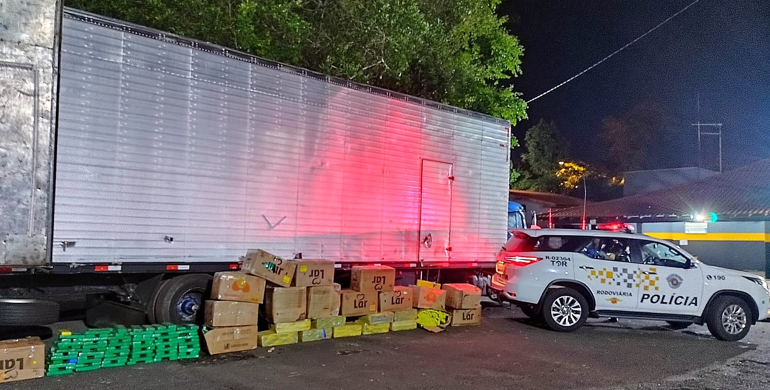 Pela área da Polícia Rodoviária Estadual, em Assis, outra operação resultou na apreensão de 1.230 tabletes de maconha, decorados com as cores da Bandeira do Brasil, que totalizaram 1.024 quilos.