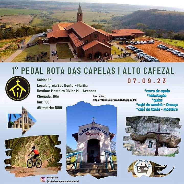 O trecho ciclístico intitulado de “Rota das Capelas – Alto Cafezal” será lançado de forma oficial neste feriado de 7 de setembro, Dia da Independência. O evento espera reunir 200 ciclistas de Marília e região, que vão percorrer da estrada rural localizada perto do Sest Senat até o distrito de Avencas.