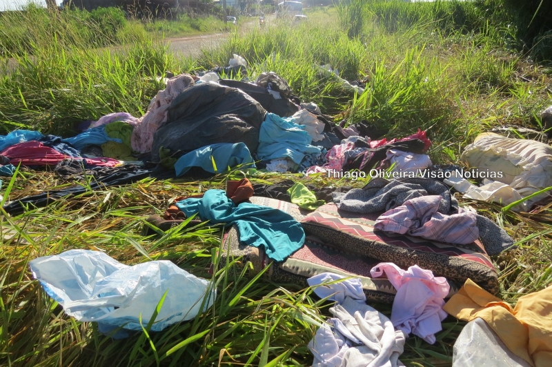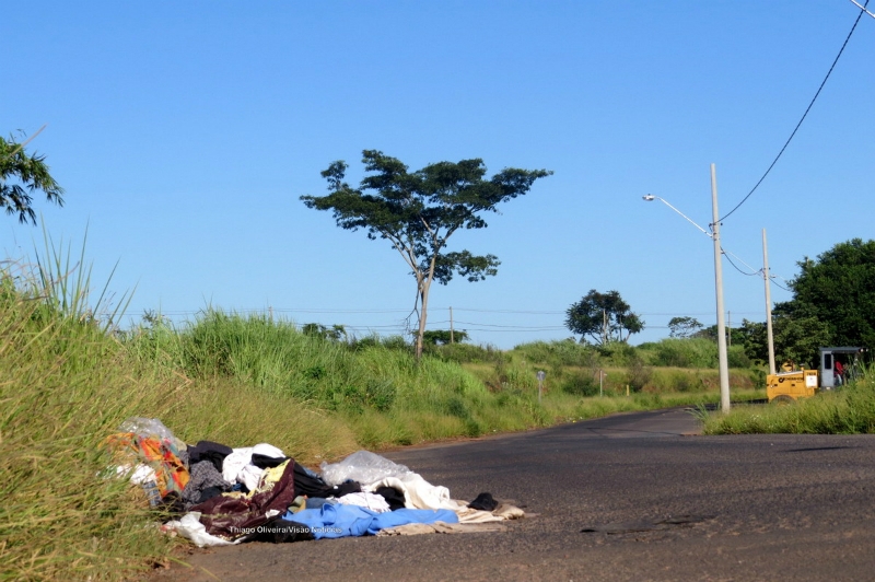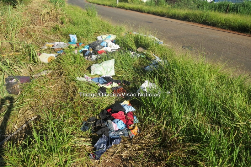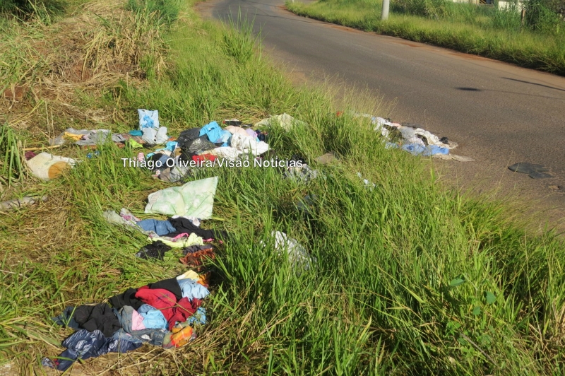 Próximo ao Distrito Industrial, mais de mil peças de roupa em excelente estado de conservação foram dispensadas nas margens da avenida República. Boa parte das roupas ficaram no matagal, porém centenas de peças foram espalhadas pela avenida.
