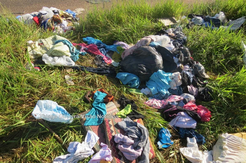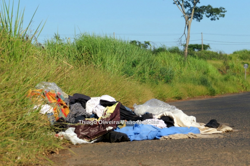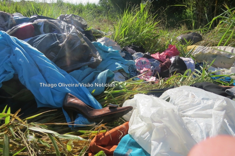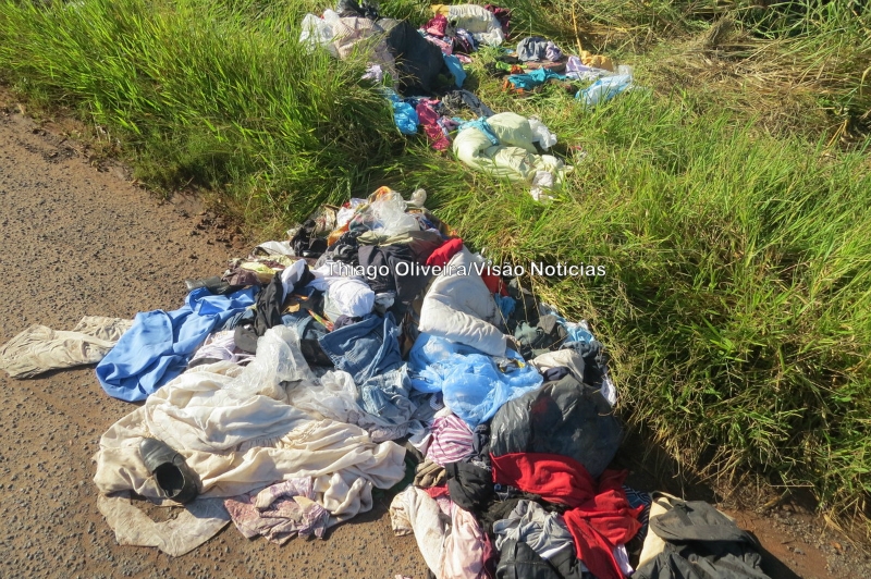 Além das roupas, bolsas e calçados em bom estado de conservação também foram dispensados na via. Além das vestimentas jogadas na via e no mato, mais de quatro sacos de lixo cheios de camisetas, vestidos e calças também foram encontrados.