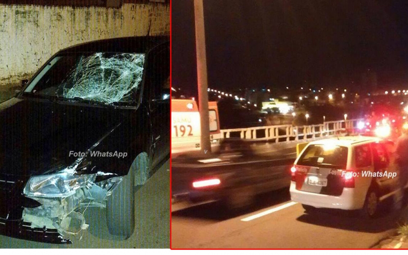 WhatsApp, a violência do impacto. O carro envolvido na colisão ficou com a frente bastante danificada, inclusive vidro dianteiro destruído.