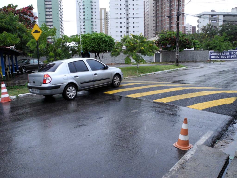 Após a chuva, pode ser que o freio assobie toda vez que você pisa no pedal. Com o carro andando, dê algumas pisadas leves no freio para secar as pastilhas