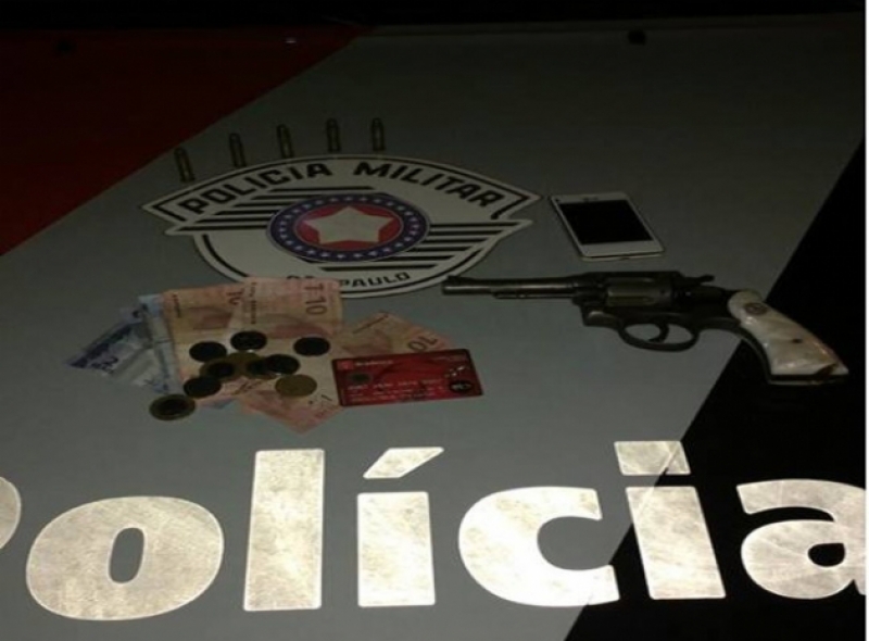 O revólver municiado com cinco munições intactas foi localizado e apreendido. O cartão e os R$ 66,00 foram devolvidos para a vítima.