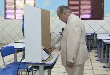Um vídeo da TV Amapá registra o momento em que o senador José Sarney (PMDB-AP), integrante da base eleitoral da presidente Dilma Rousseff (PT) e por seu antecessor, Luiz Inácio Lula da Silva, supostamente vota em Aécio Neves (PSDB).