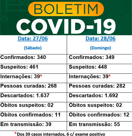 A cidade permanece com 39 pessoas internadas nos hospitais da cidade (o mesmo número de ontem). sendo que seis com diagnóstico confirmado e 33 ainda como suspeitos.