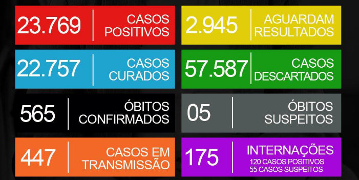 Também foram confirmados mais 220 casos positivos nas últimas 24 horas e agora são 23.769 pessoas diagnosticadas com a Covid-19 desde o início da pandemia.