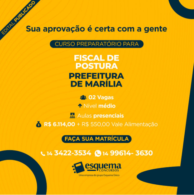 A Prefeitura de Marília encerra nesta sexta-feira as inscrições para o concurso público para a área da Saúde, com 29 vagas. Outros dois concursos também terão inscrições encerradas nos próximos dias: 49 para área de vários cargos (encerramento dia 10/11) e uma para Procurador Jurídico (09/11)