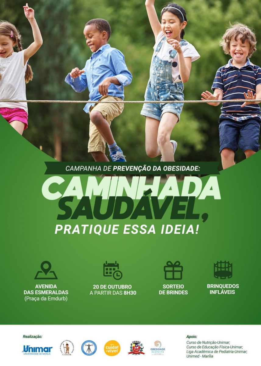 Acontece no próximo dia 20 (domingo) Caminhada para marcar a luta contra a obesidade infantil. A iniciativa, que reúne vários parceiros, é da Liga de Endocrinologia e Metabologia da Unimar – Universidade de Marília.