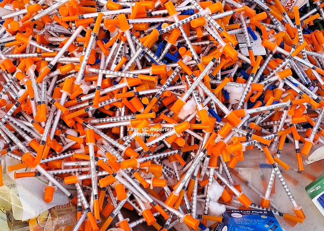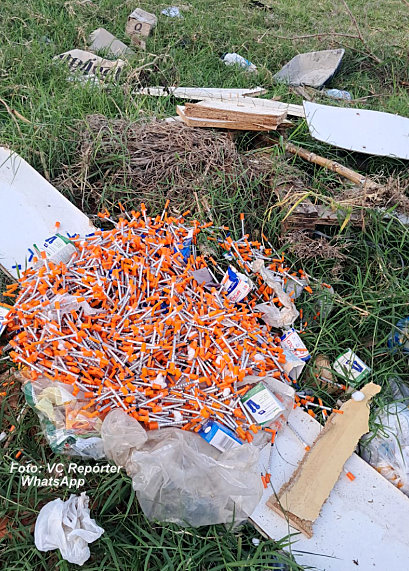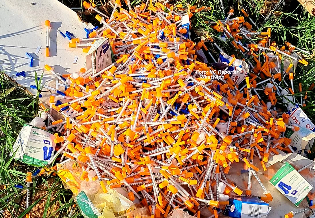 A área fica ao lado de estabelecimentos comerciais e de casas. "Isso é um perigo para a comunidade, principalmente crianças", alertou a internauta. Segundo ela, muitas seringas ainda nem foram usadas.