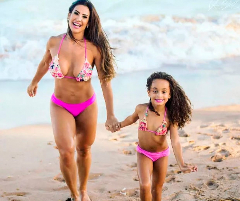No Instagram, a eterna Morena do Tchan publicou uma foto curtindo a praia na companhia da pequena, com direito a biquíni igual, estilo 'tal mãe, tal filha'.
