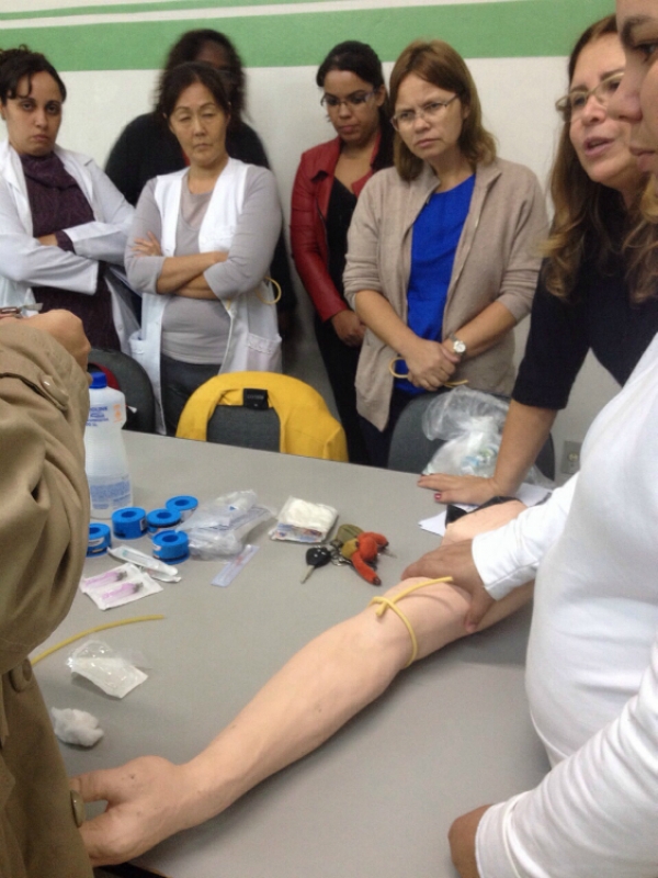 Foi promovido nos meses de maio e junho, cursos de capacitação teórica e prática de punção venosa em crianças para os profissionais da rede municipal de saúde.
