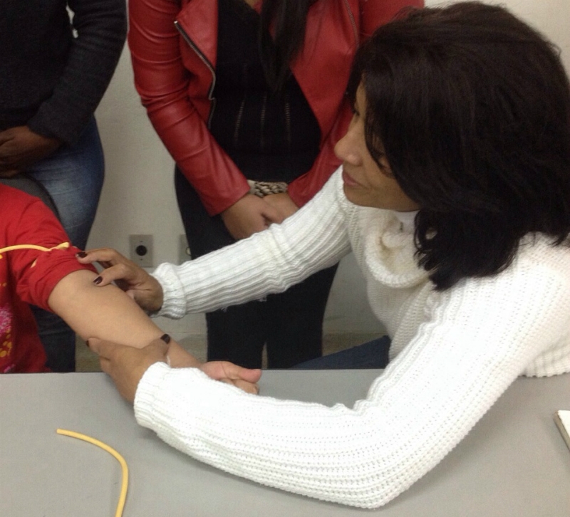 As atividades tiveram seis horas de teoria e prática, utilizando material de simulação (bonecos) semelhante ao corpo humano, onde o profissional treinou a técnica conforme a orientação e supervisão dos docentes parceiros.