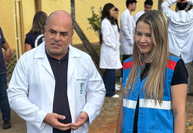 Secretária Paloma Libanio ao lado do coordenador do curso de Medicina Veterinária da Unimar, Fábio Manhoso.