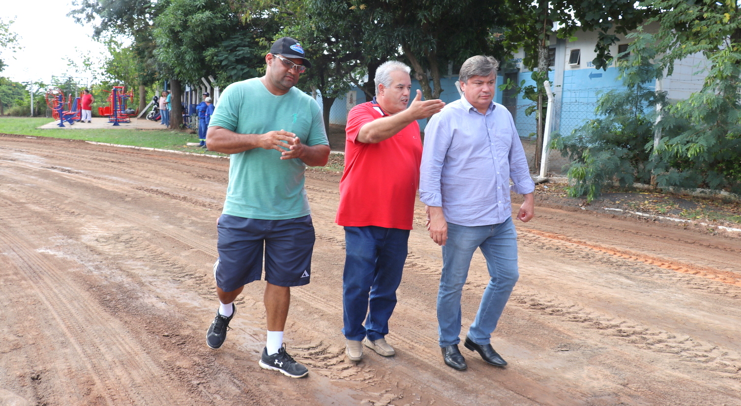 Eduardo Nascimento (ao lado do prefeito Daniel e do coordenador de Esportes, Alecsandro Ramos da Silva - Lecão) ao vistoriar melhorias na pista de atletismo do estádio Pedro Sola.
