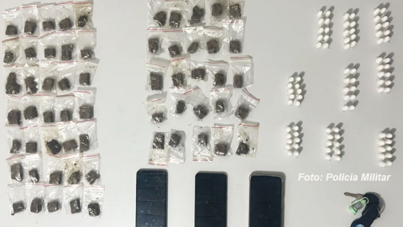 Os dois maiores foram autuados em flagrante por tráfico e os menores apreendidos, permanecendo à disposição da justiça.
