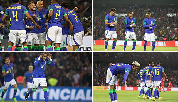 Só na primeira etapa foram quatro gols: dois de Raphinha, um de pênalti de Neymar e Richarlison também marcou antes do intervalo.