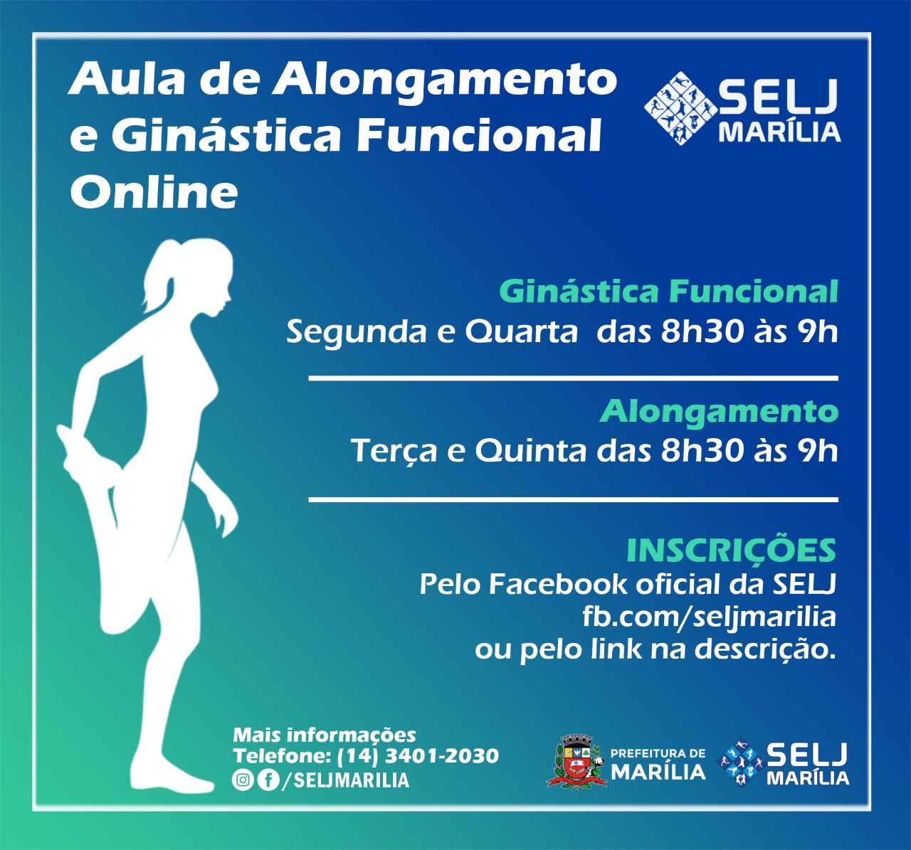 Para participar o interessado deverá fazer um cadastro via facebook (SELJ Marília). “A importância de alongamento ou ginástica funcional está diretamente ligada a nossa qualidade de vida, traz benefícios para a mente e nos proporciona calma, melhorando a respiração, diminuindo também o estresse e a ansiedade”, afirmou Daniel Sabino, secretário da SELJ e professor de educação física.