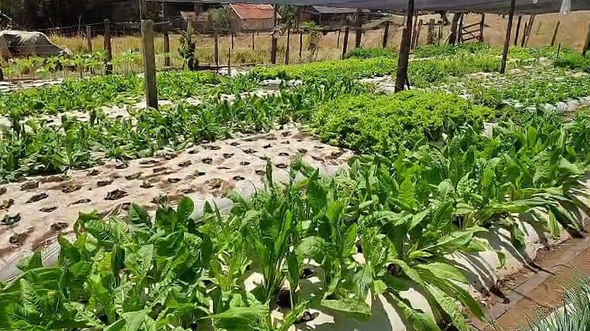 Ele mostra a horta onde produz alimentos para venda: sem energia, não há como bombear água do poço para regar as plantas. Outra preocupação é com a alimentação do gado: