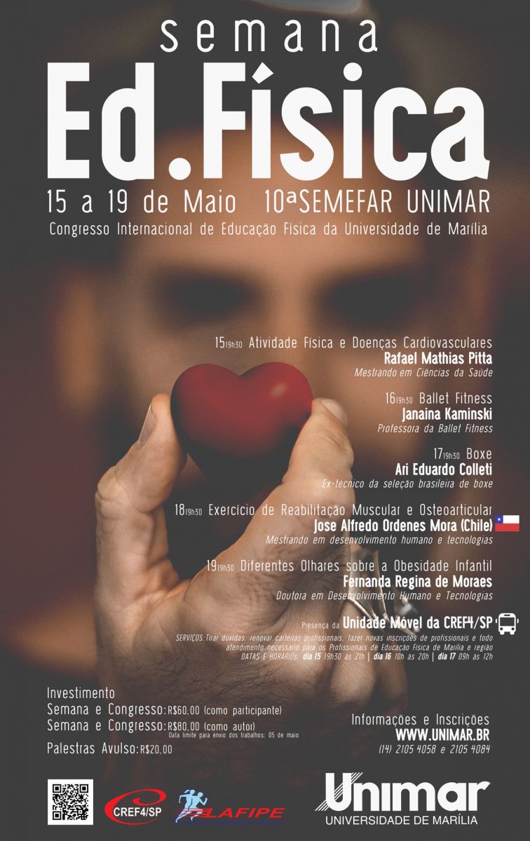 O curso de Educação Física da Universidade de Marília (Unimar), melhor e mais tradicional da região, realiza de 15 a 19 de maio o Congresso Internacional de