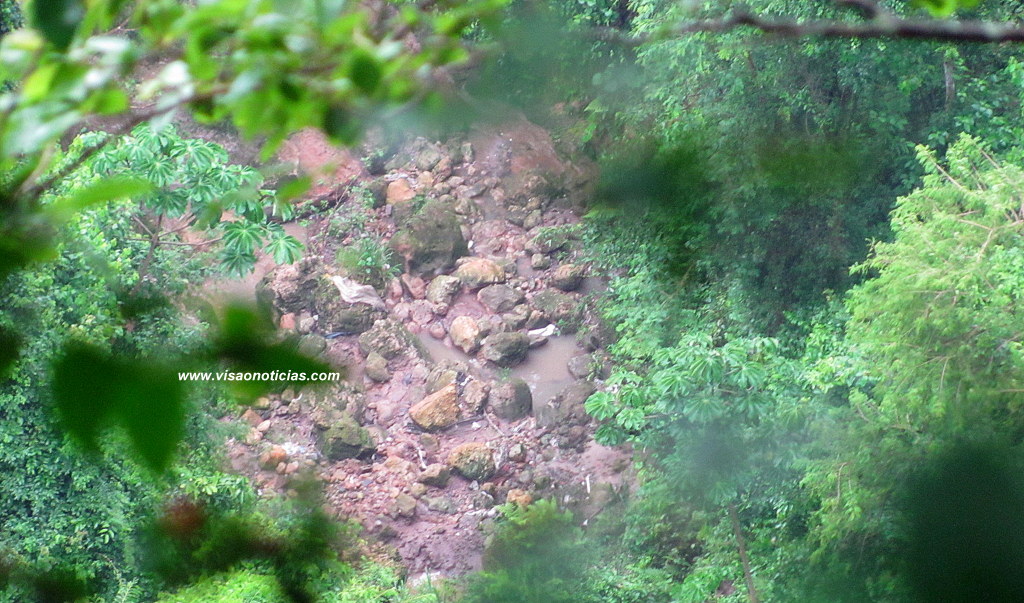 Por cima, é possível ter uma noção da altura de onde o corpo despencou, após ser levado pela enxurrada.