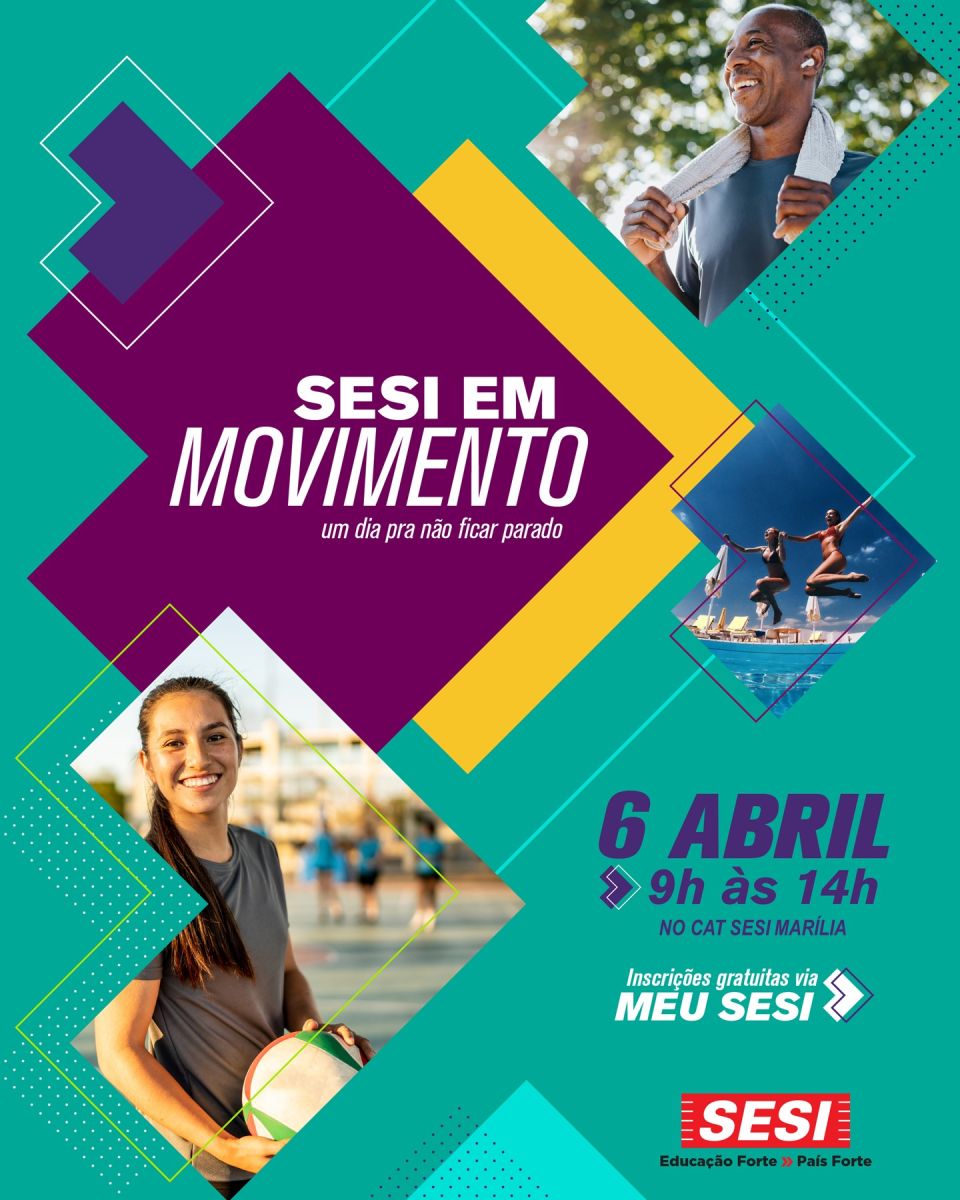 A unidade do SESI em Marília também estará promovendo uma programação especial "Sesi em Movimento", em comemoração ao Dia Mundial da Atividade Física. As atividades acontecem das 9h às 14h. No caso de Marília, estão previstas: ginástica, caminhada e/ou corrida, ritmos e treinamento funcional.