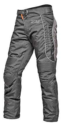 A parte debaixo do vestuário também é importante. Calças jeans comuns podem funcionar bem no dia a dia, mas para andar de moto, é melhor escolher um produto especial. Há opções de calças no mercado que contam com tecidos resistentes à abrasão e reforço nos joelhos, canelas e quadril. Calças impermeáveis podem ser compradas em conjunto com jaquetas. Os modelos devem ter o comprimento um pouco maior que as pernas, para garantir a flexibilidade e a cobertura do corpo quando o condutor está acomodado na moto.