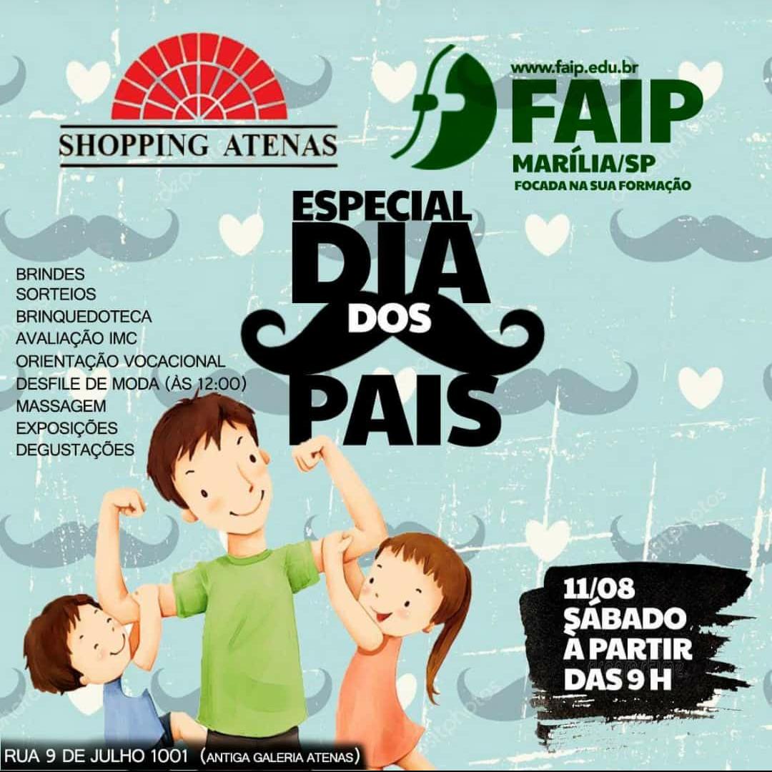O Shopping Atenas, o primeiro centro de compras de Marília, preparou atrações especiais para receber seus clientes neste fim de semana, com um movimento no comércio voltado ao Dia dos Pais. Além do horário especial nesta sexta e sábado, estão programadas atividades para toda família, incluindo crianças e mamães.