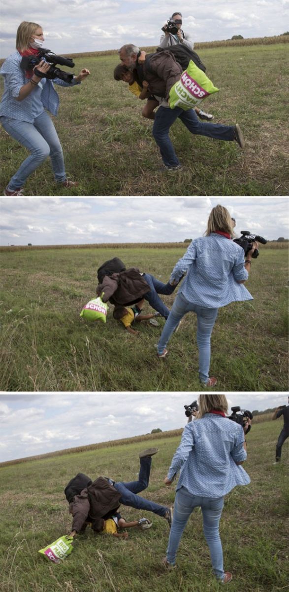 O vídeo do migrante Osama Abdul Mohsen, em que ele aparece fugindo da polícia com seu filho Zaid nos braços e caindo no chão depois que uma repórter lhe deu uma rasteira, rodou o mundo em 9 de setembro.