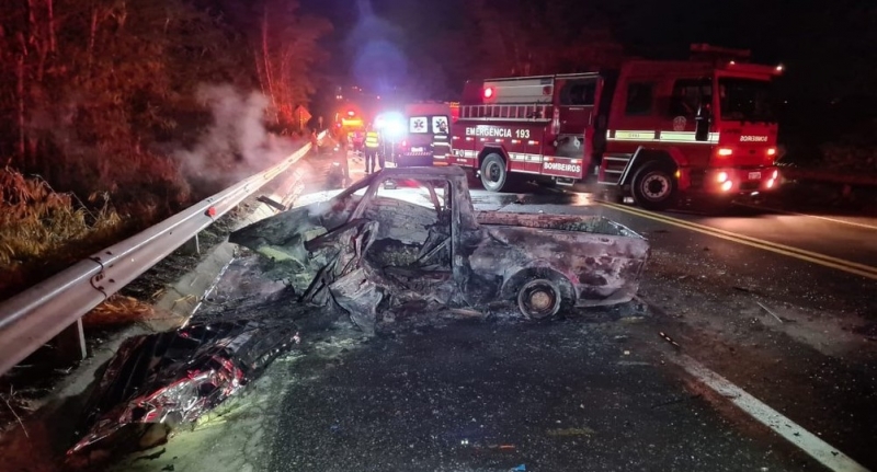 Um dos veículos pegou fogo e os três ocupantes morreram carbonizados.