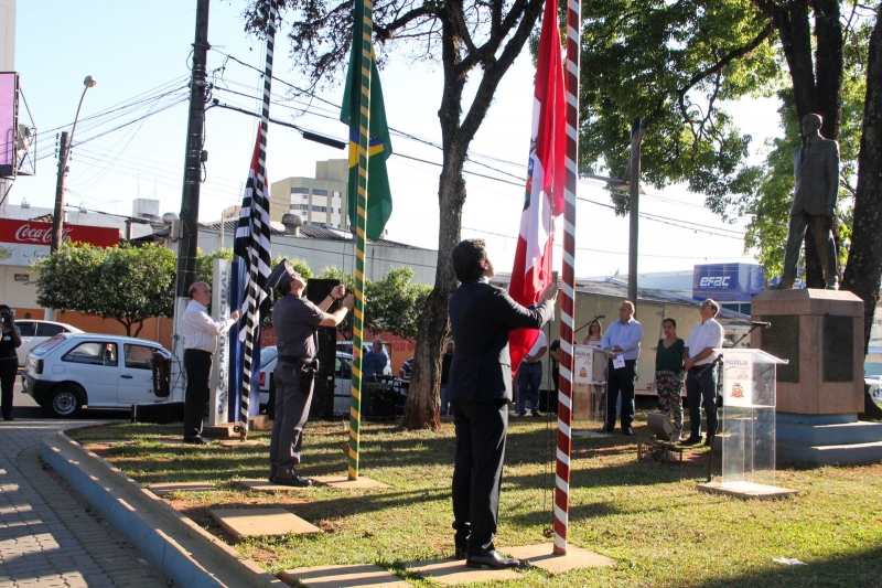 O evento contou com hasteamento das bandeiras do Brasil, do Estado de São Paulo e de Marília, execução dos Hinos Nacional e da Independência pela Banda Marcial “Cidade de Marília” e apresentação de catira e dança nordestina dos alunos da Emef Integral “Professor Célio Corradi”.