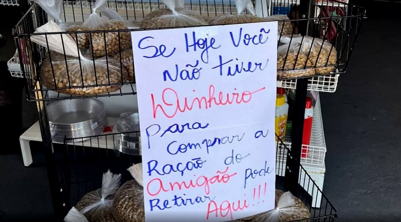 Uma ação de citadania feita uma clínica veterinária de Marília que está doando ração para cachorro aos donos que não têm dinheiro, está viralizando na internet, com mais de 12 mil compartilhamentos em poucos dias. Em uma prateleira móvel, pacotes ficam à disposição dos interessados, com um cartaz explicando o motivo dessa ação de solidariedade;