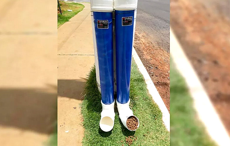 Entre elas, construíram comedouros e bebedouros com canos em PVC para os cachorros em situação de rua.