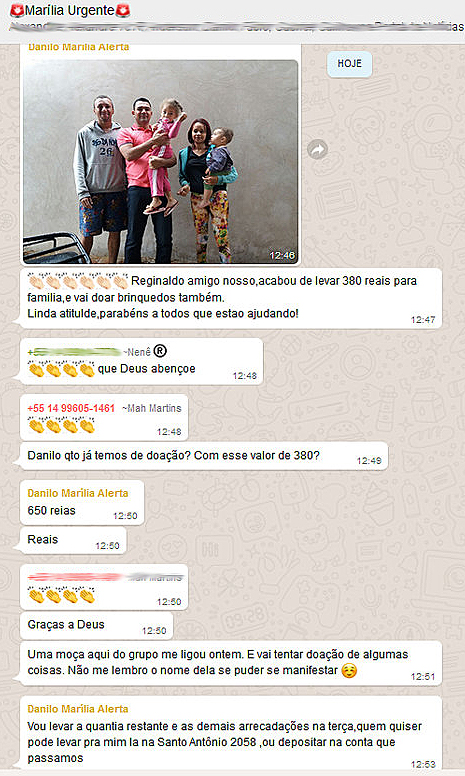 Um amigo do servente de pedreiro, o comerciante Danilo Guimarães ficou sensibilizado e resolveu pedir ajuda através das redes sociais (grupos de WhapsApp- Marília Alerta e Marília Urgente) e rapidamente as pessoas responderam favoravelmente. Um rapaz, de nome Reginaldo, por exemplo, organizou uma "vaquinha" entre os amigos que jogam bola numa chácara e conseguiu arrecadar R$ 380,00.