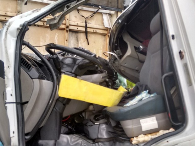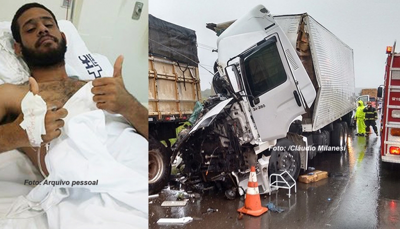 O caminhão que ele estava se envolveu numa colisão traseira com uma carreta e Cristian ficou preso nas ferragens por cerca de três horas.